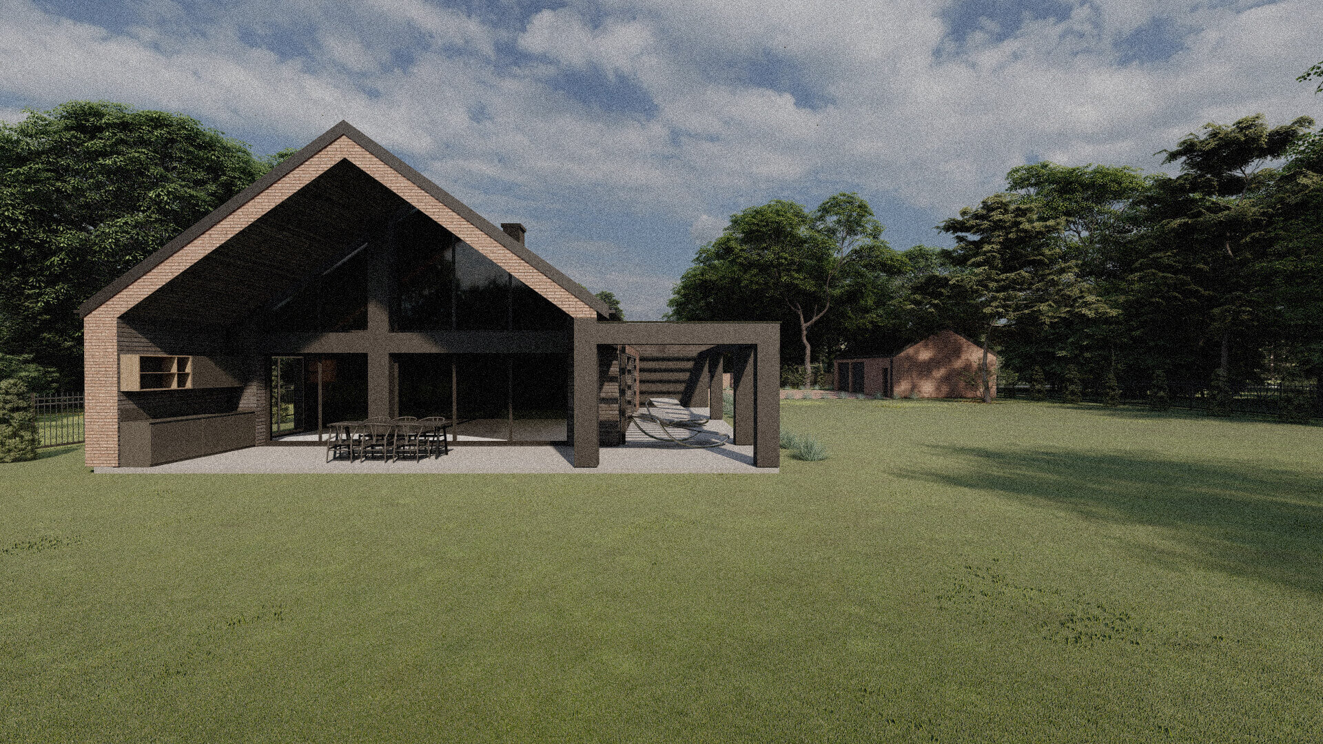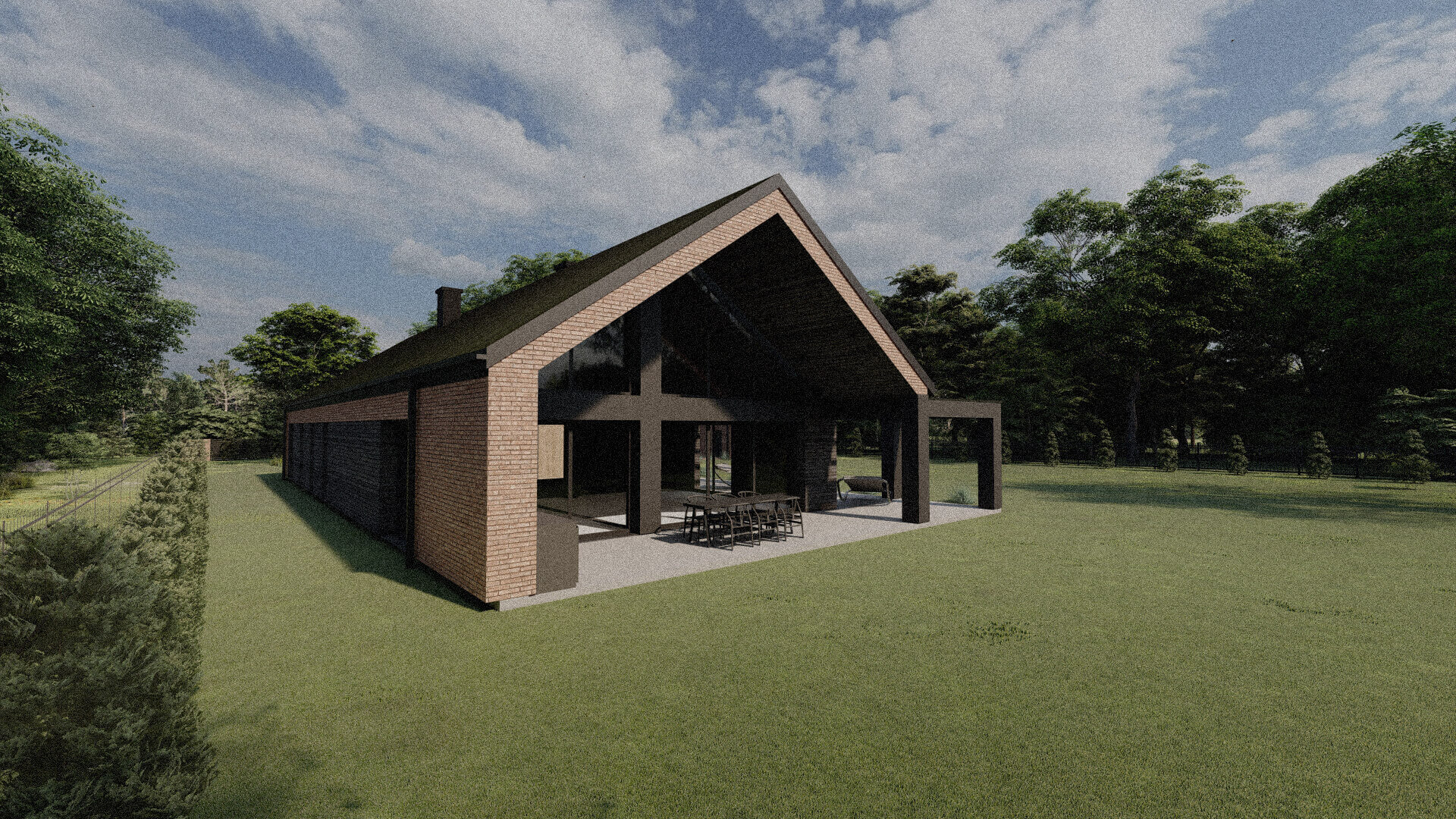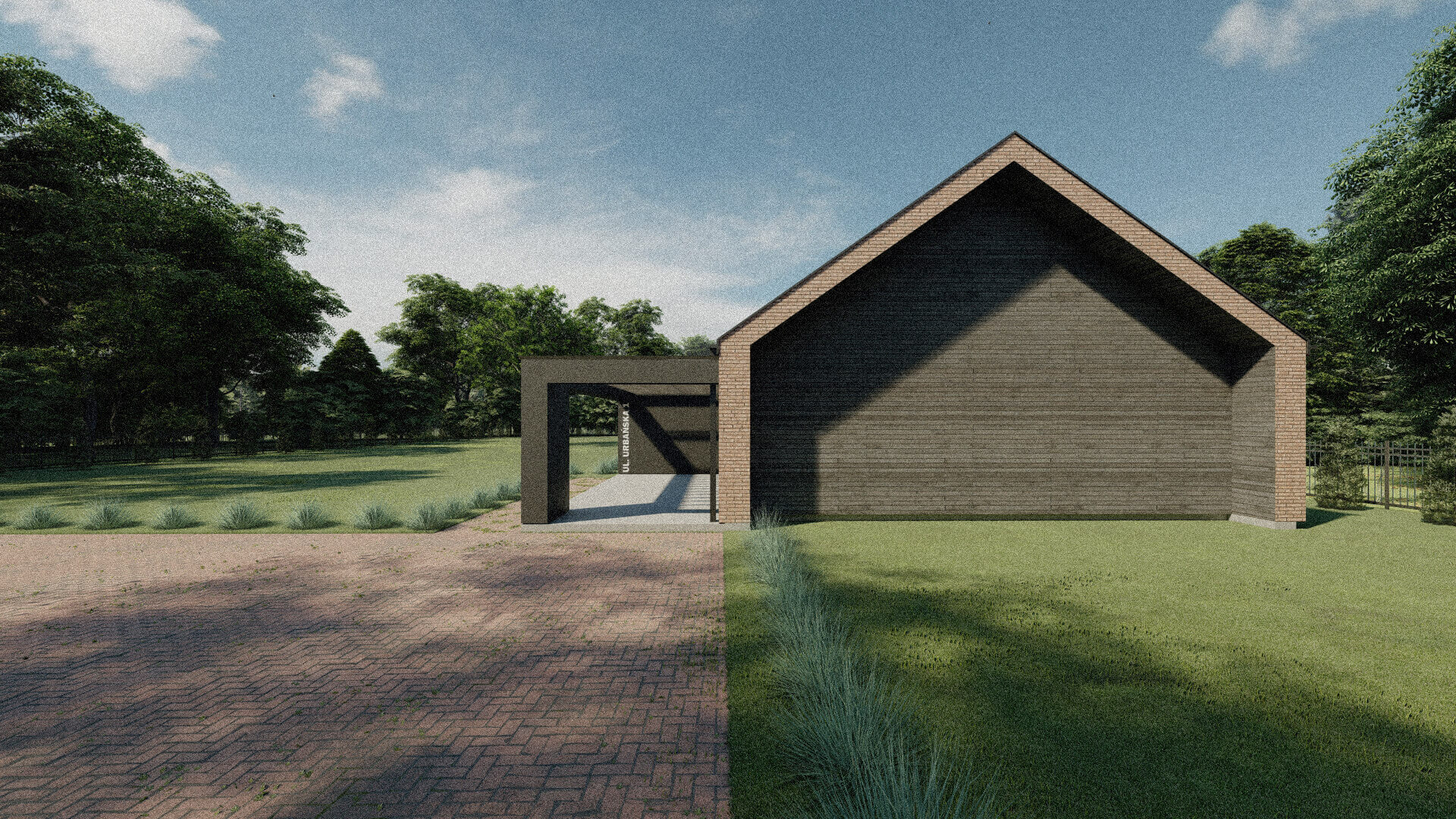 Nowoczesna stodoła harmonijnie wpisana w sielskie, wiejskie otoczenie oraz sąsiedztwo stadniny koni. Minimalistyczna bryła została przełamana czernią, dużymi przeszkleniami otwierającymi wnętrze na krajobraz oraz cegłą klinkierową nawiązującą do tradycyjnych, historycznych budowli w nowoczesnej interpretacji. Całość tworzy spokojną, ponadczasową przestrzeń opartą na dialogu architektury z naturą i lokalnym kontekstem.