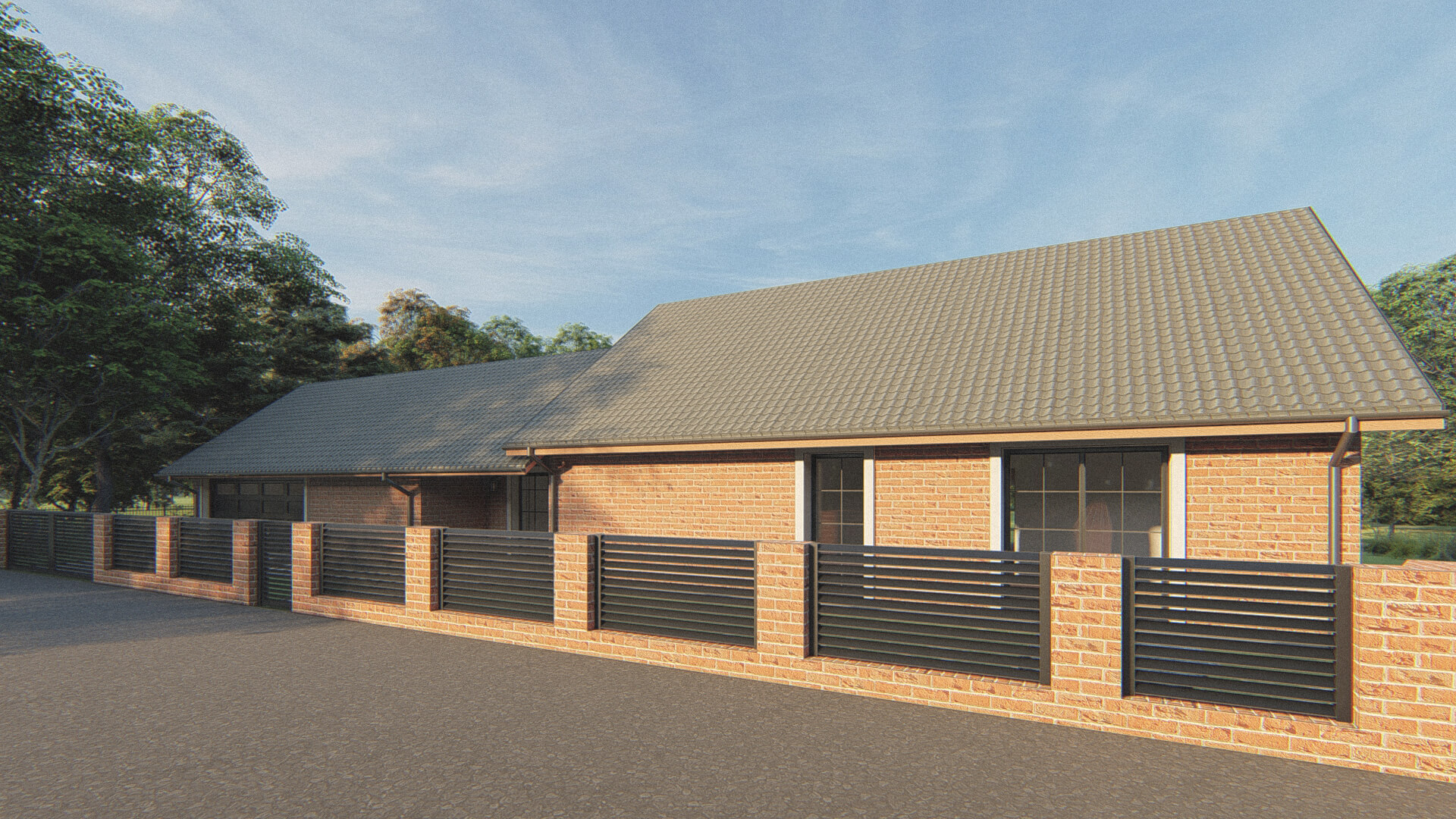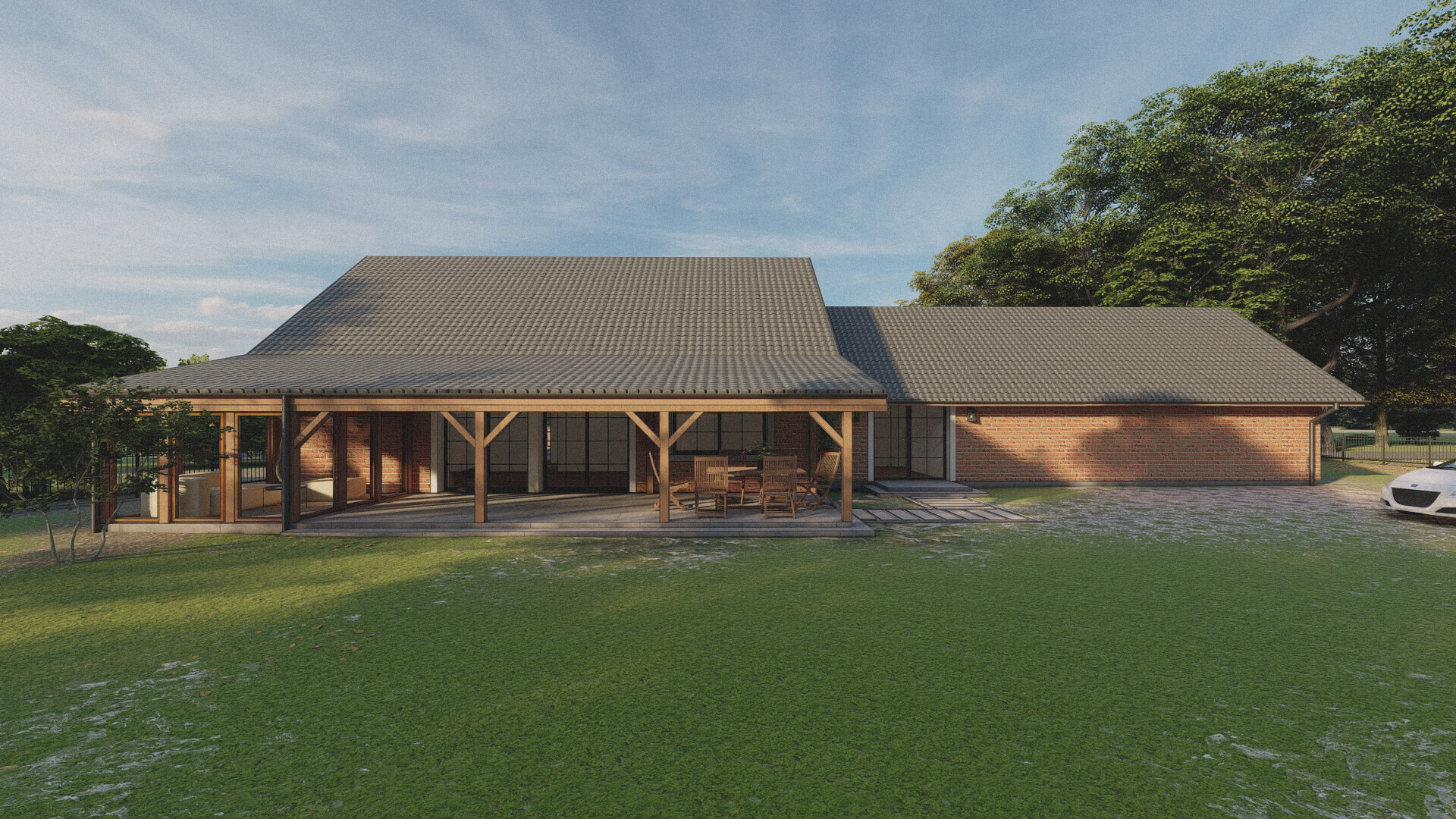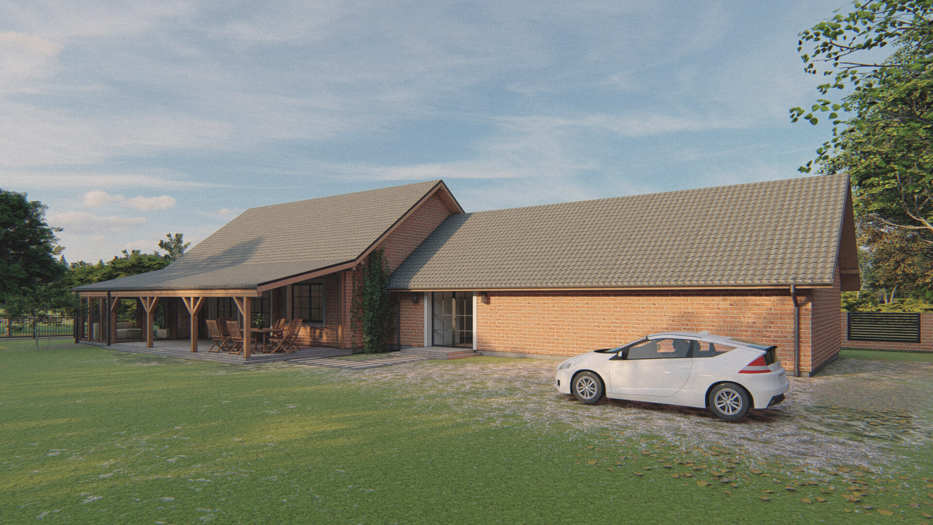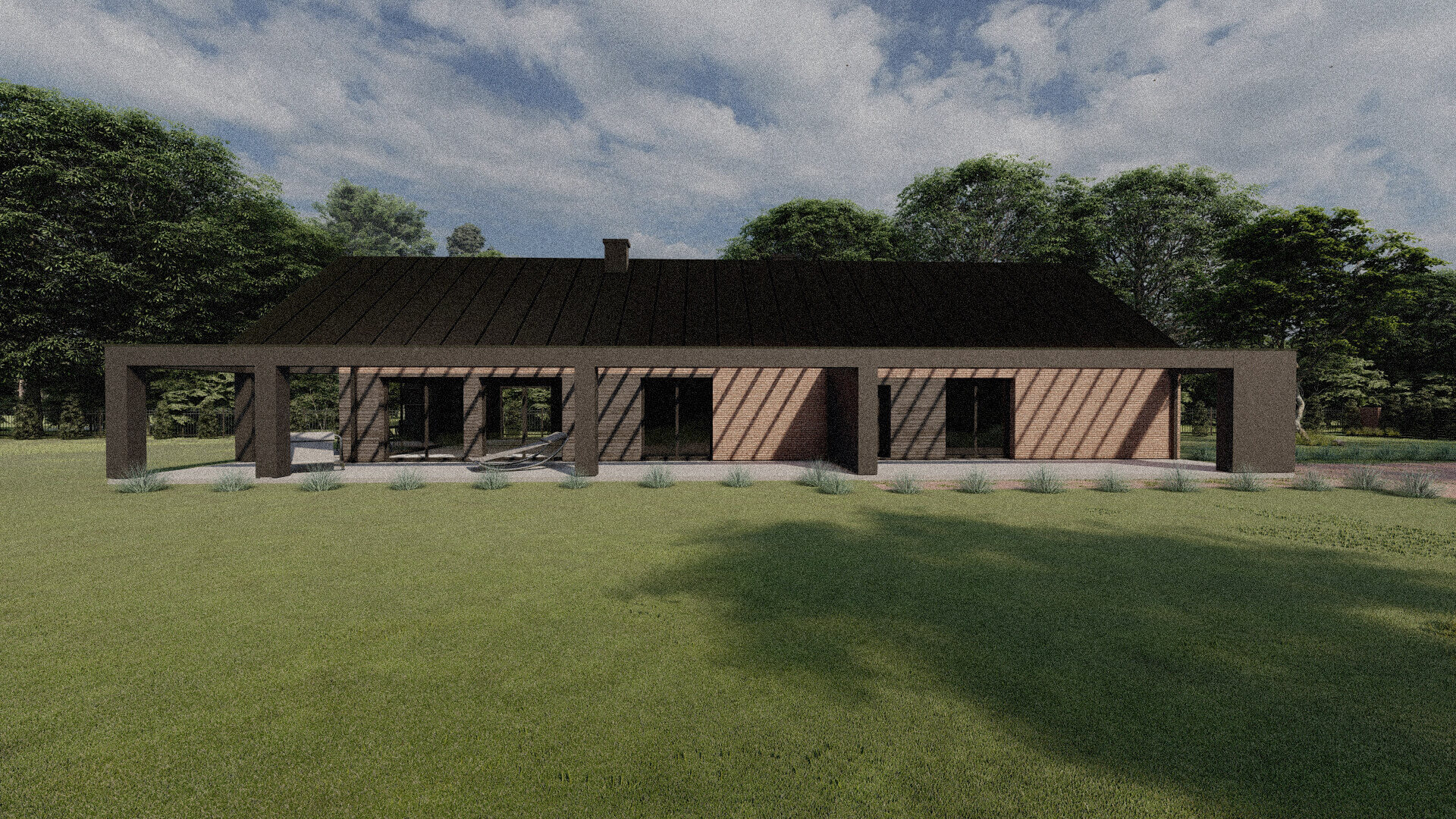 Nowoczesna stodoła harmonijnie wpisana w sielskie, wiejskie otoczenie oraz sąsiedztwo stadniny koni. Minimalistyczna bryła została przełamana czernią, dużymi przeszkleniami otwierającymi wnętrze na krajobraz oraz cegłą klinkierową nawiązującą do tradycyjnych, historycznych budowli w nowoczesnej interpretacji. Całość tworzy spokojną, ponadczasową przestrzeń opartą na dialogu architektury z naturą i lokalnym kontekstem.