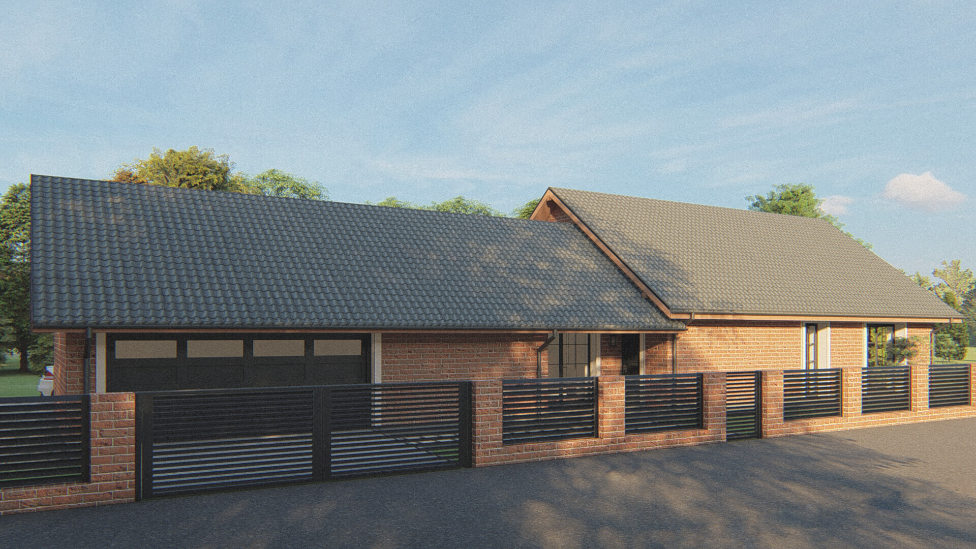 Przedstawiona inwestycja to przebudowa i rozbudowa przedwojennego, wiejskiego domu mieszkalnego, z zachowaniem jego pierwotnego charakteru. Projekt wzbogacono o elementy klasyczne, takie jak bonie wokół okien, które podkreślają proporcje elewacji. Czarne detale stolarki i ogrodzenia nadają całości elegancki, ponadczasowy wyraz, a duże przeszklenia wprowadzają do wnętrz naturalne światło. Całość stanowi harmonijne połączenie tradycji z nowoczesną funkcjonalnością.